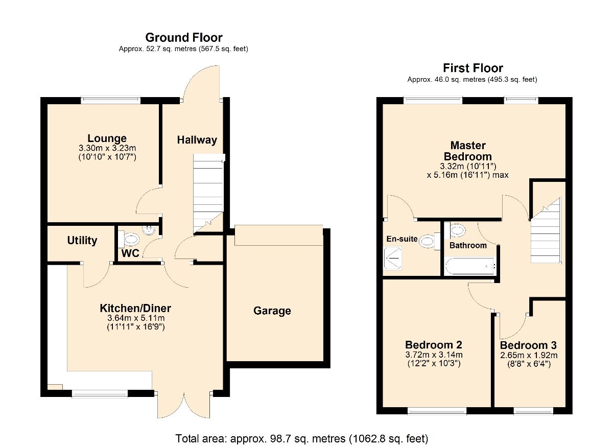 Kitchen/diner w: 3.36m x l: 5.35m (w: 11′ x l: 17′ 7″)