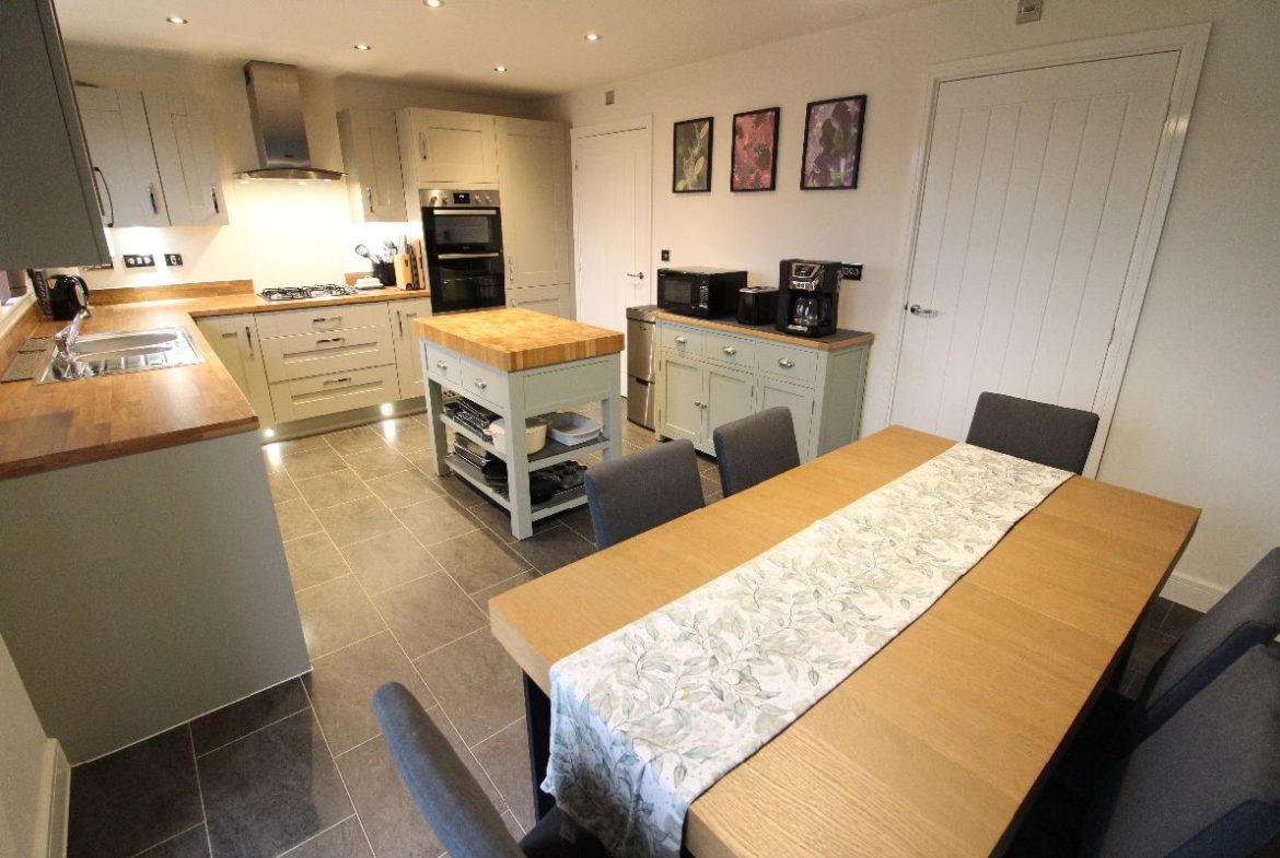 An extremely well-presented three-bedroom detached home, built by Taylor Wimpey in 2020 and located on the popular Meadowsweet Farm development in Bishops Tachbrook. The property benefits from approximately £12,000 worth of developer upgrades and offers well-proportioned accommodation comprising an entrance hall, guest WC, living room, and a stylish kitchen/diner featuring a sage-coloured Symphony kitchen with integral appliances, complemented by a separate utility room.
