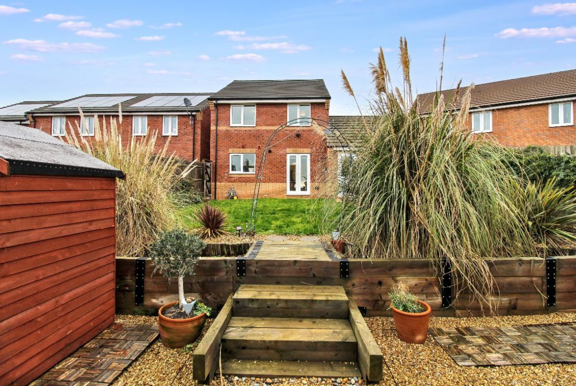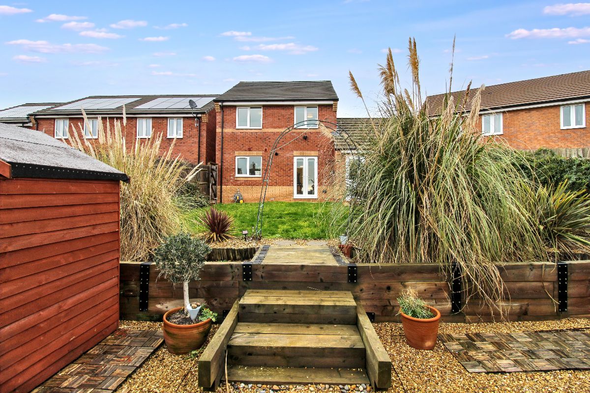 The generous main bedroom is enhanced by an en-suite shower room, alongside two further bedrooms and a family bathroom. Externally, the property enjoys a southerly-facing landscaped rear garden, an attached garage, front garden, and off-road parking for two vehicles. Offered to the market with no onward chain.