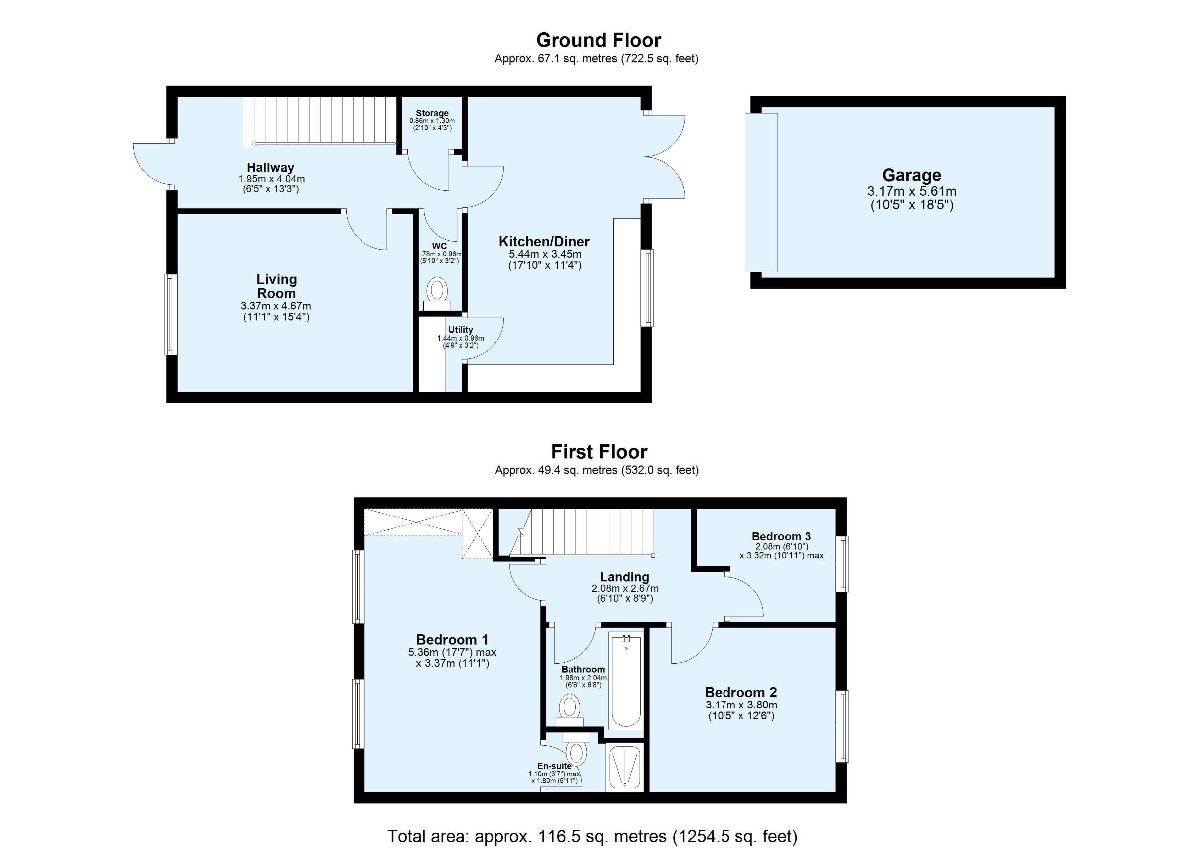 Kitchen/diner w: 3.37m x l: 5.38m (w: 11′ 1″ x l: 17′ 8″)